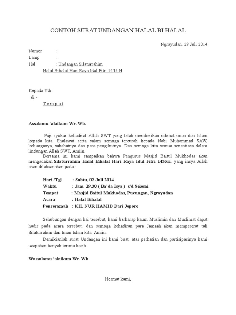 Untuk lebih paham lagi soal surat undangan silahkan perhatikan contoh berikut ini Surat undangan adalah surat yang dibuat dengan tujuan mengajak seseorang atau pihak lain untuk menghadiri sebuah acara tertentu. Contoh surat undangan tasyakuran dan marhaban bayi. Download now hasil gambar untuk bingkai undangan yang bisa di edit word. Contoh surat undangan tahlil 40 100 1000 hari haul doc.